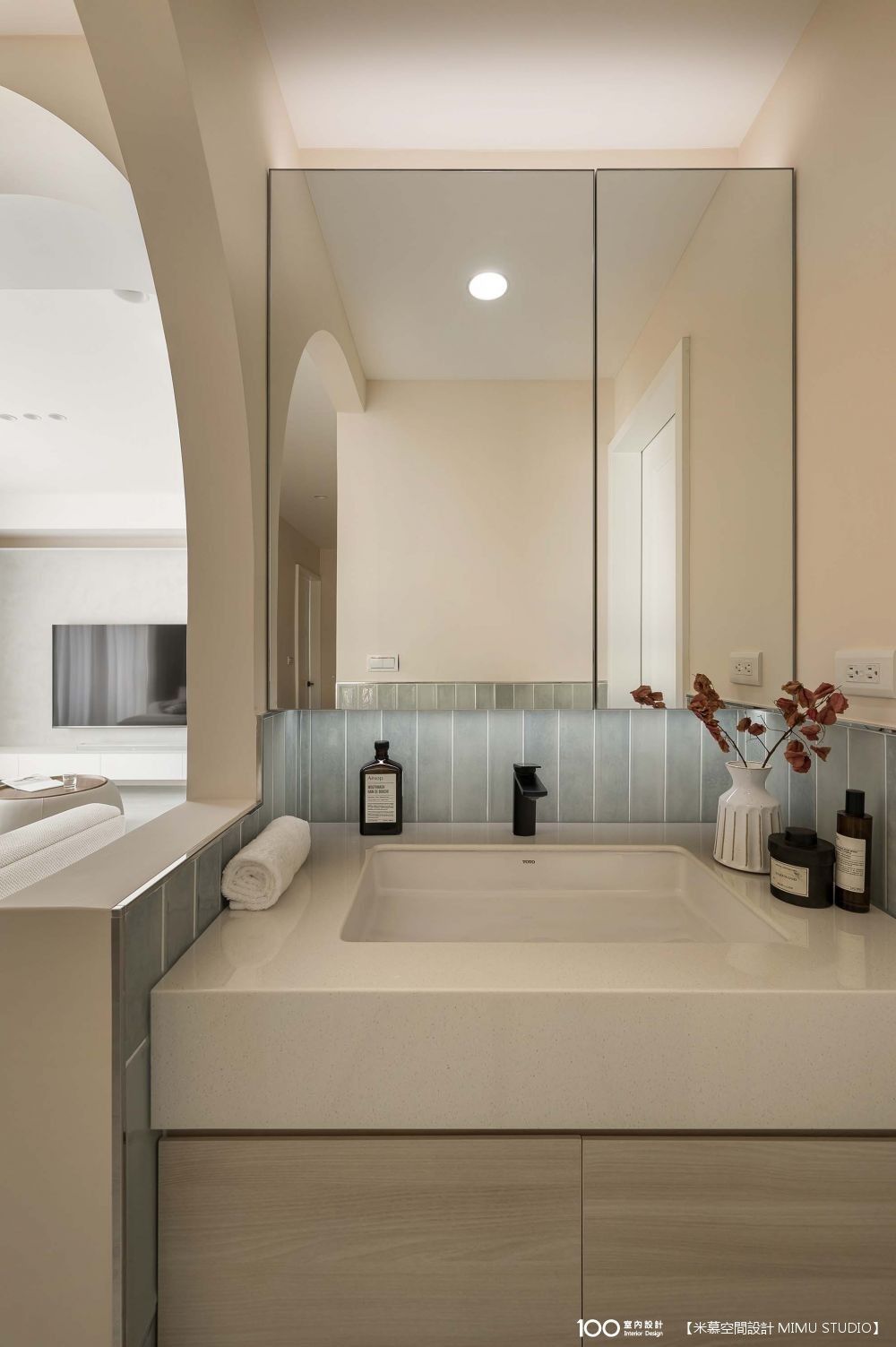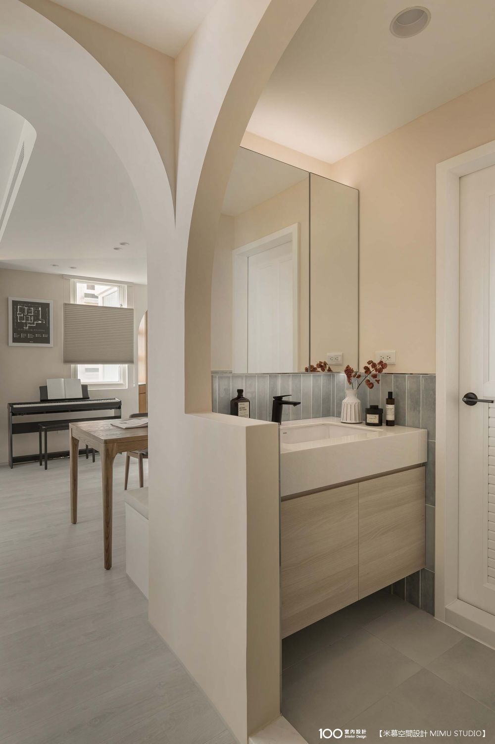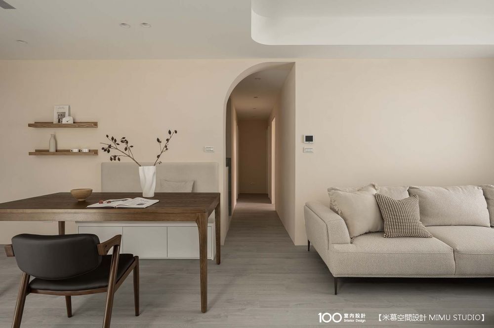 ▲圓弧天花、拱門相呼應,弱化銳角,讓行走動線更順暢、視覺更柔和。