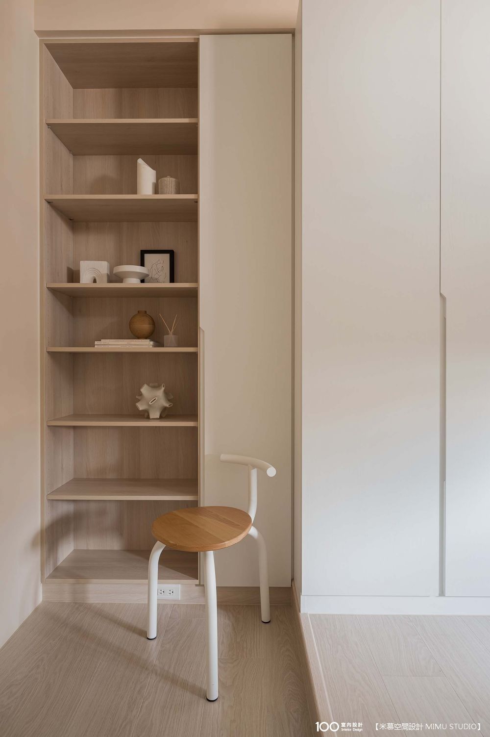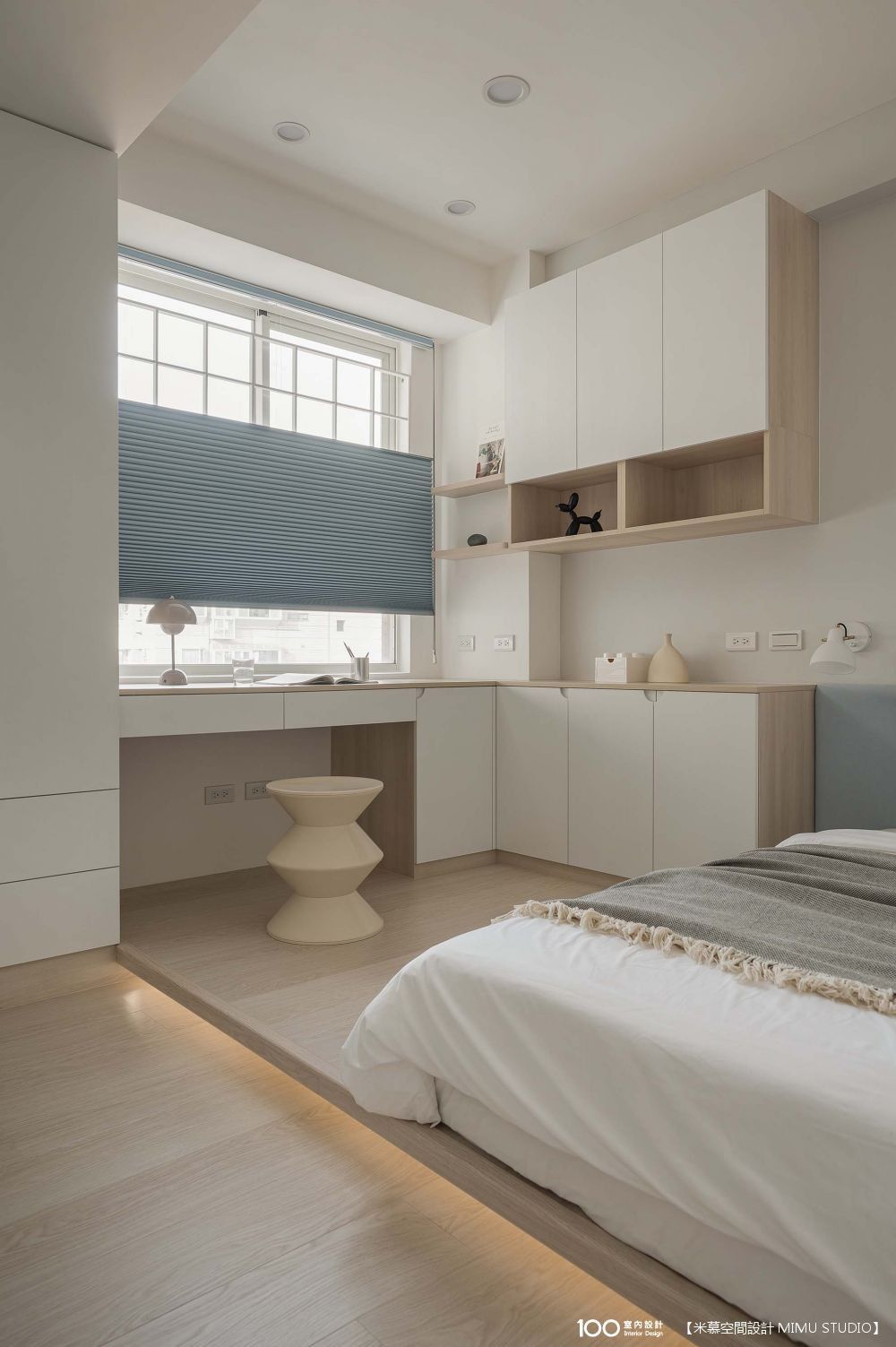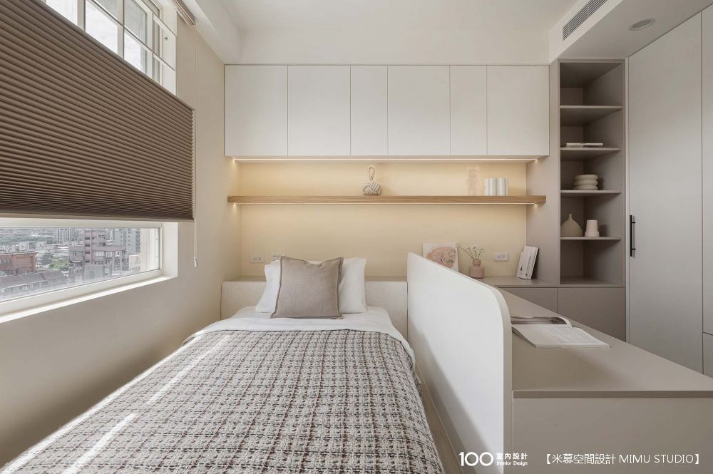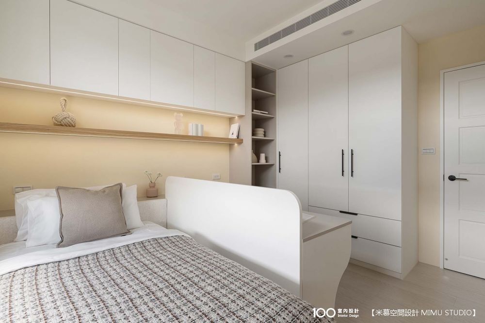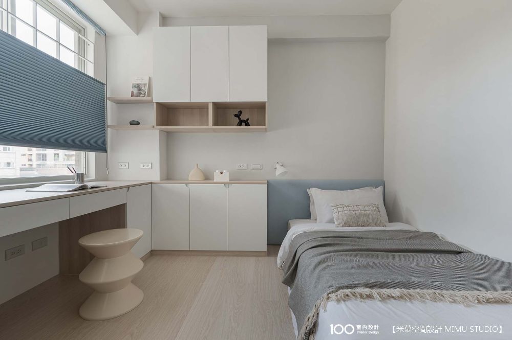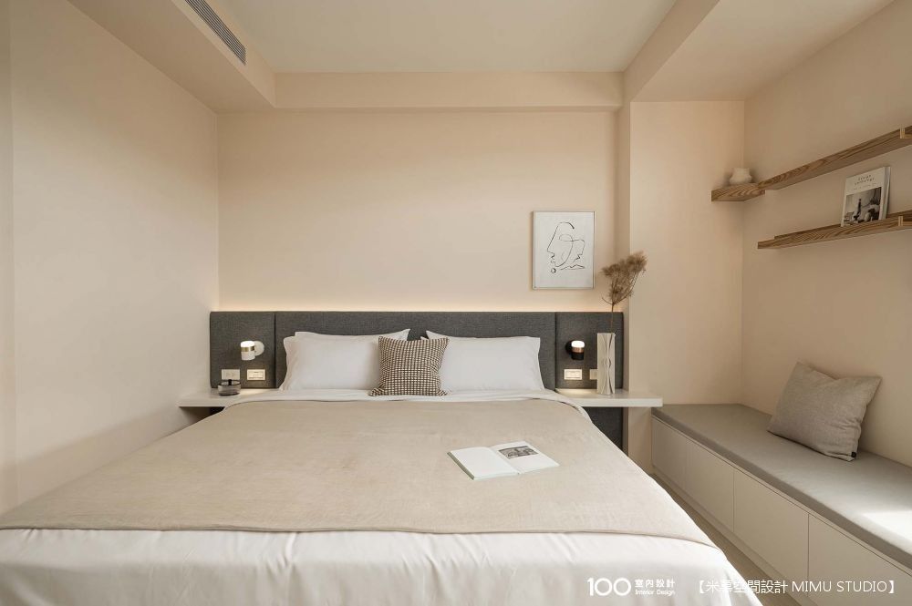 這間保留了標準雙人床的空間,並請設計師打造做收納櫃和預留足夠的插座。