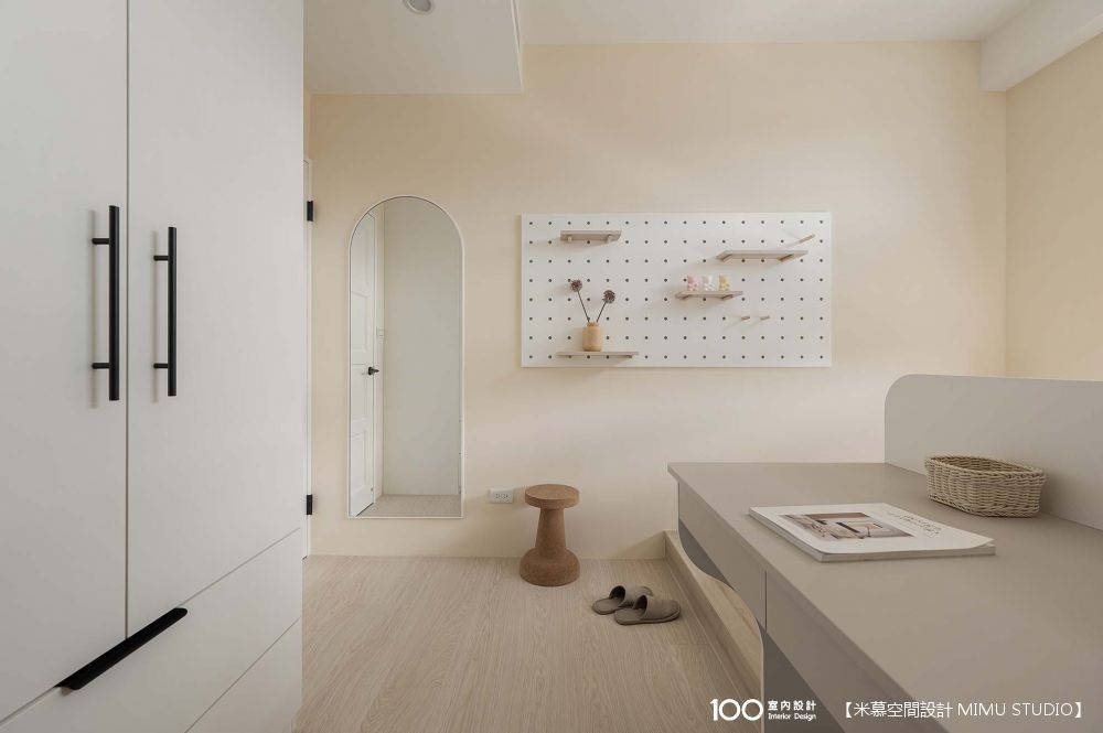 ▲全身鏡讓姐姐出門前可以整理服裝,洞洞板則可擺放她喜歡的公仔、裝飾品。