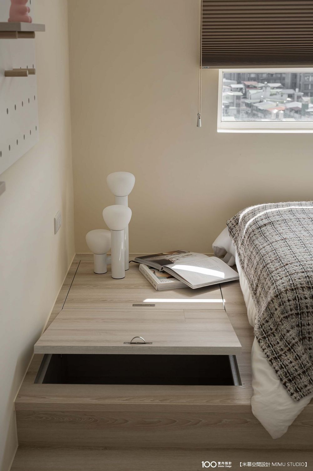 ▲床尾的地板上做了隱藏式收納。