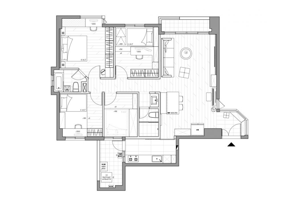 格局不需要變動,除了客餐廳之外,要有四間臥房、兩間衛浴,雖然不常下廚,但還是要有可以料理輕食的廚房空間。