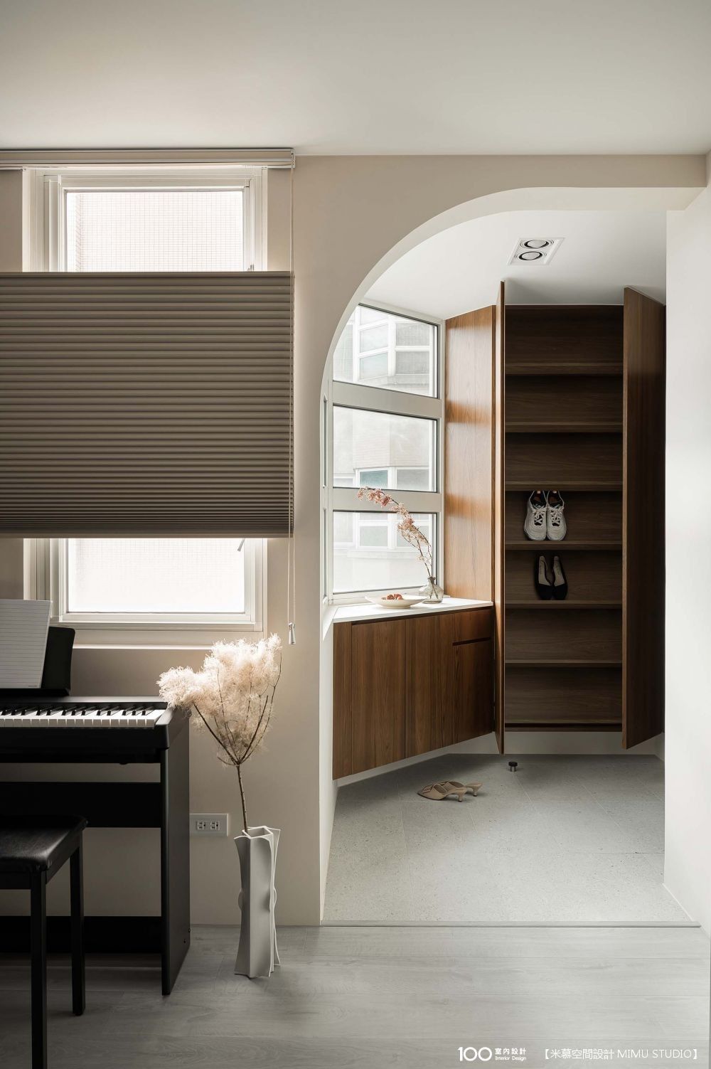 ▲設置風琴簾 避免光線直接照到鋼琴,也可以依需求調整採光,呈現出更柔和舒適的光線。