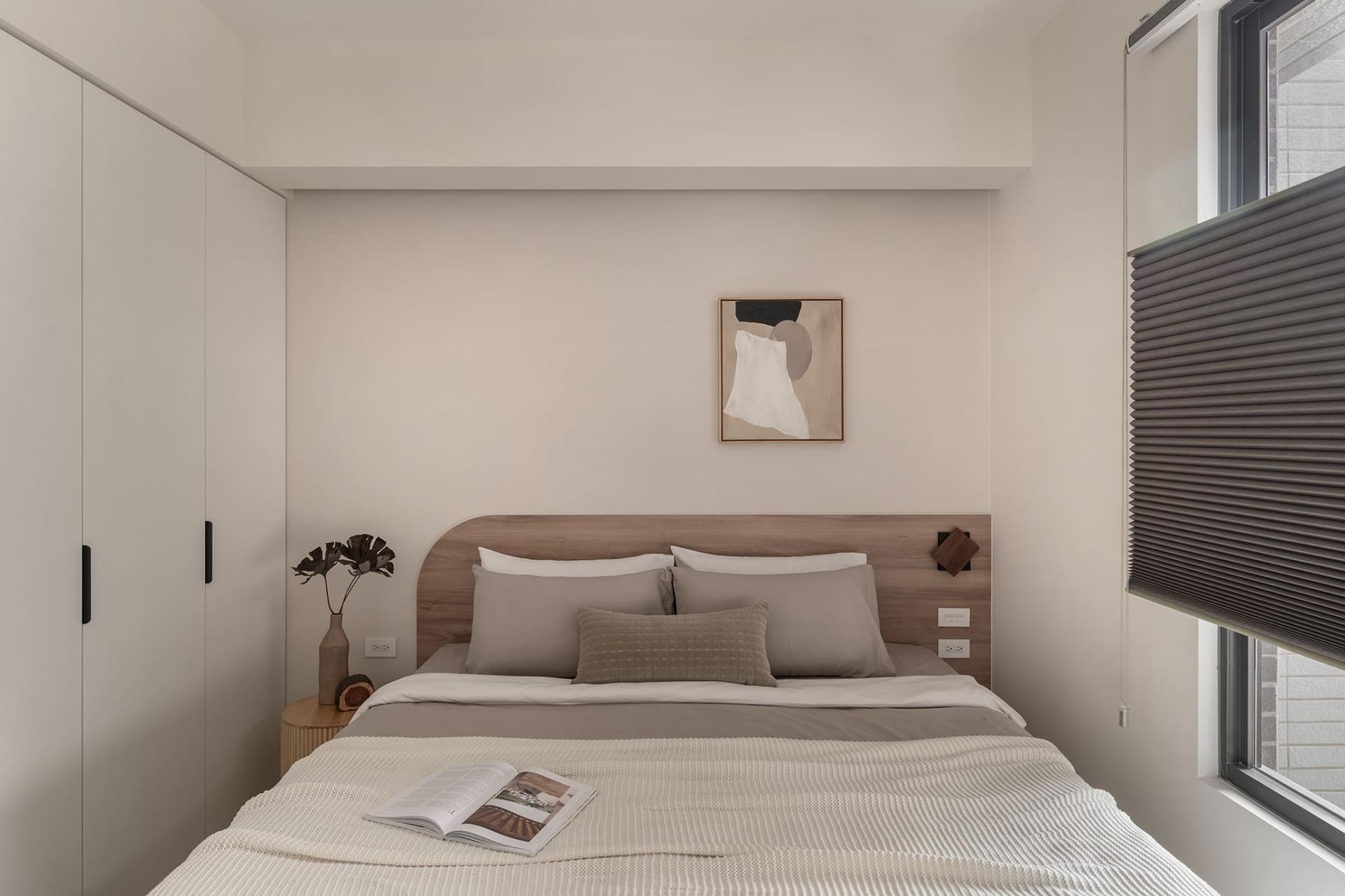 The minimalist design language is further extended to private quarters. The bedside wall features a scratch- and moisture-resistant wood-patterned panel system, softened by rounded corners to reduce visual pressure and physical collision risk—forming a serene and secure space for rest and restoration. The overall space is clean yet nuanced, using blankness as a canvas for daily life. Every detail contributes to a living landscape imbued with both texture and warmth.