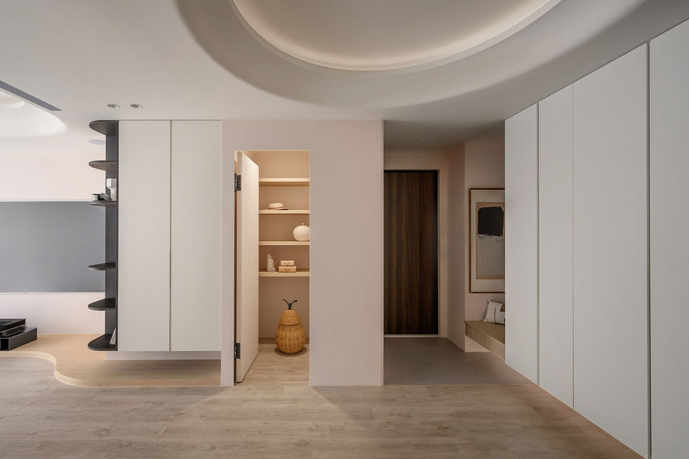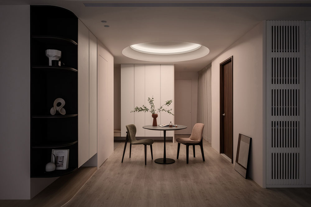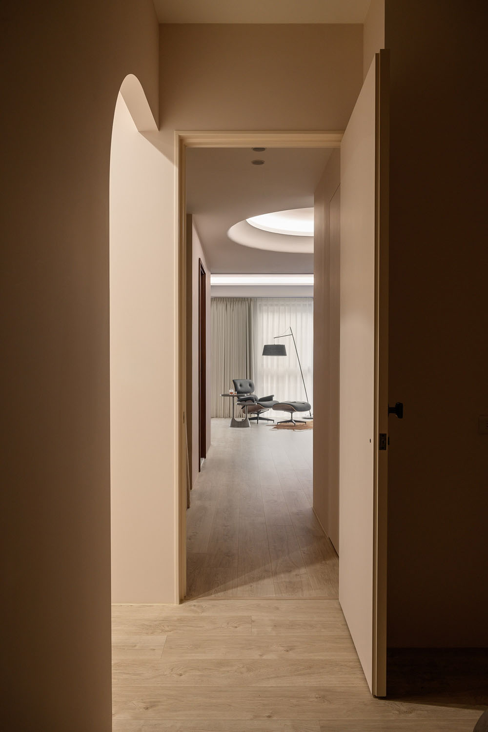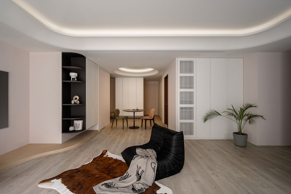 This residential planning and design project is thoughtfully centered around the core elements of “open space, rounded forms, and tranquility.” The objective is to cultivate a luxurious and elegant living environment that invites residents to both socialize and savor moments of solitude. To achieve this vision, the overall design is anchored in a harmonious palette of low-saturation latte tones, seamlessly paired with gray-brown wood flooring.