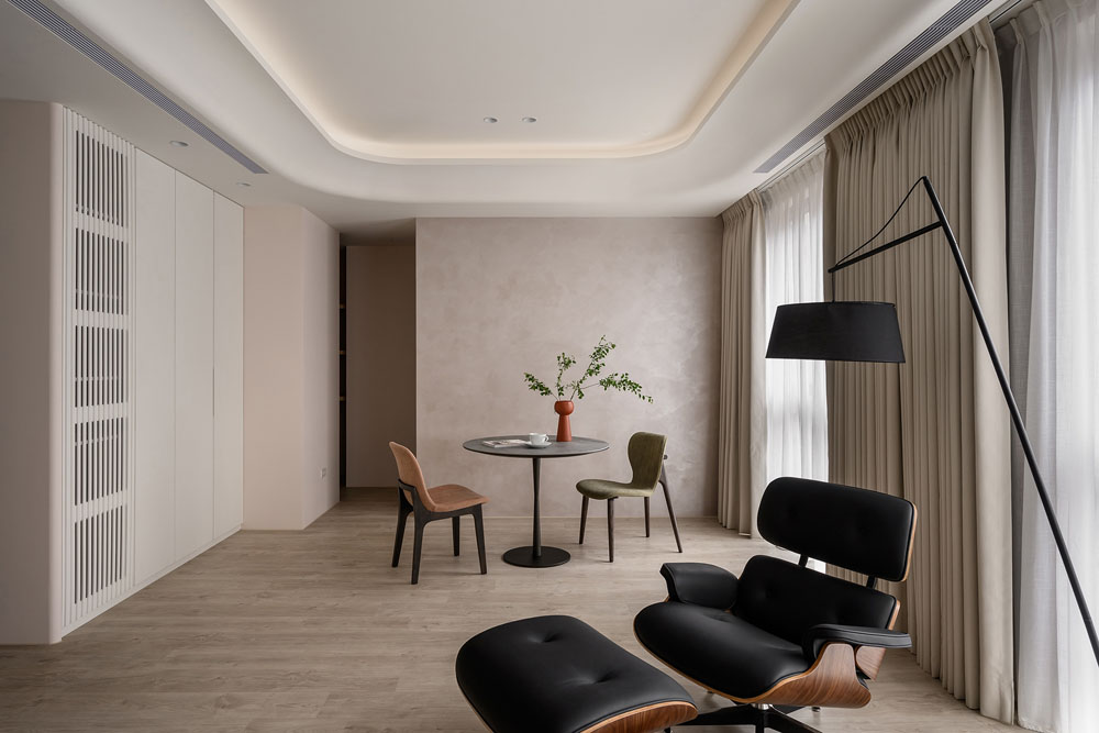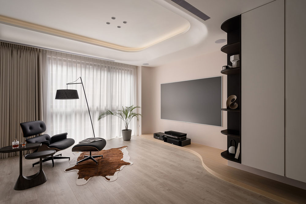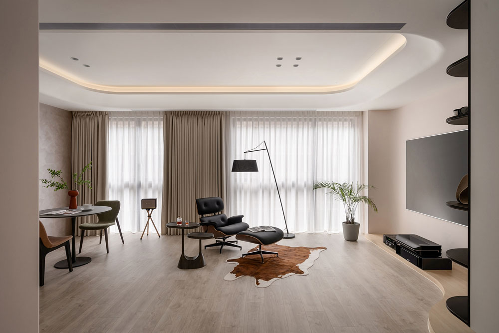 This residential planning and design project is thoughtfully centered around the core elements of “open space, rounded forms, and tranquility.” The objective is to cultivate a luxurious and elegant living environment that invites residents to both socialize and savor moments of solitude. To achieve this vision, the overall design is anchored in a harmonious palette of low-saturation latte tones, seamlessly paired with gray-brown wood flooring.